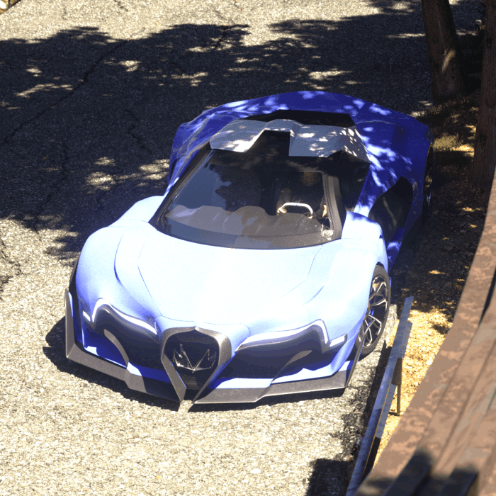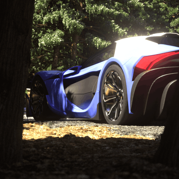 The project spans multiple visual explorations: cinematic showrooms highlighting every refined surface, dynamic sequences shot “in nature” where the car is unleashed in motion, and close-up studies that reveal the engineering mindset behind its conception. Every frame is crafted to reinforce the illusion that this machine could exist, down to its hybrid V8 architecture, active aero systems, and weight distribution, balancing technical credibility with visual seduction.